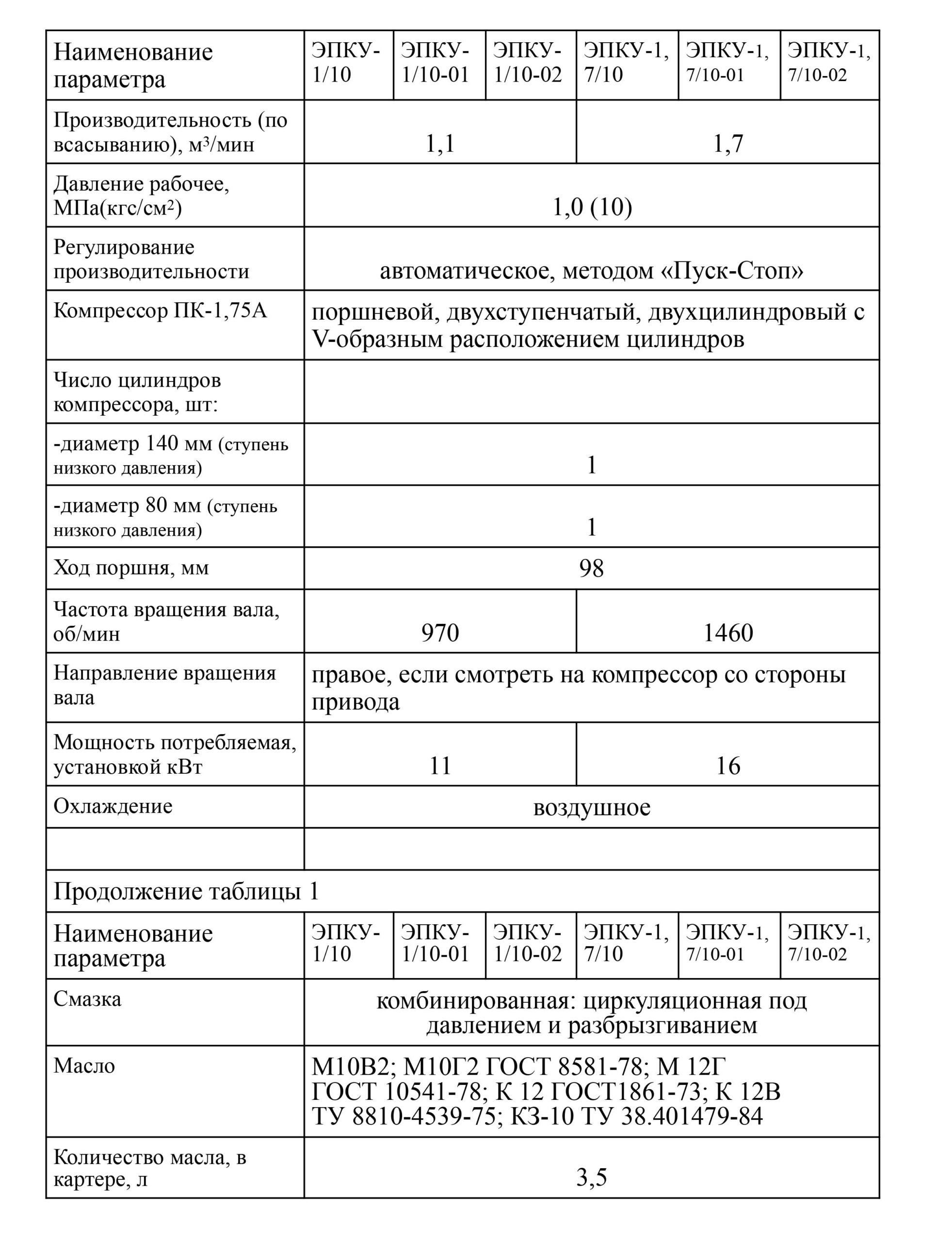 Компресорні електроприводні установки ЕПКУ-1/10 та ЕПКУ-1,7/10 (далі — установки) призначені для вироблення стисненого повітря тиском до 10 кгс/см² та подачі його до різних механізмів і інструментів.